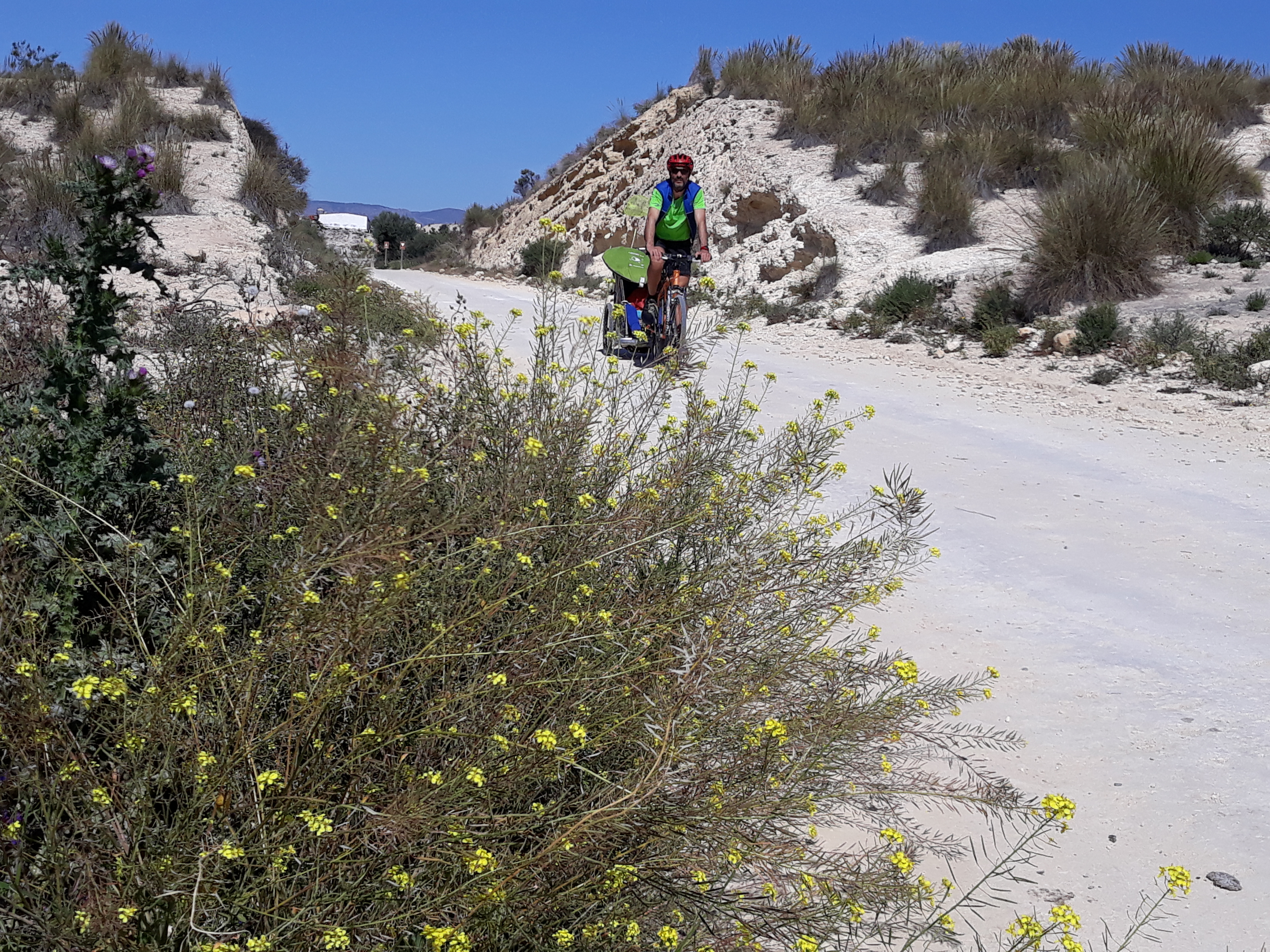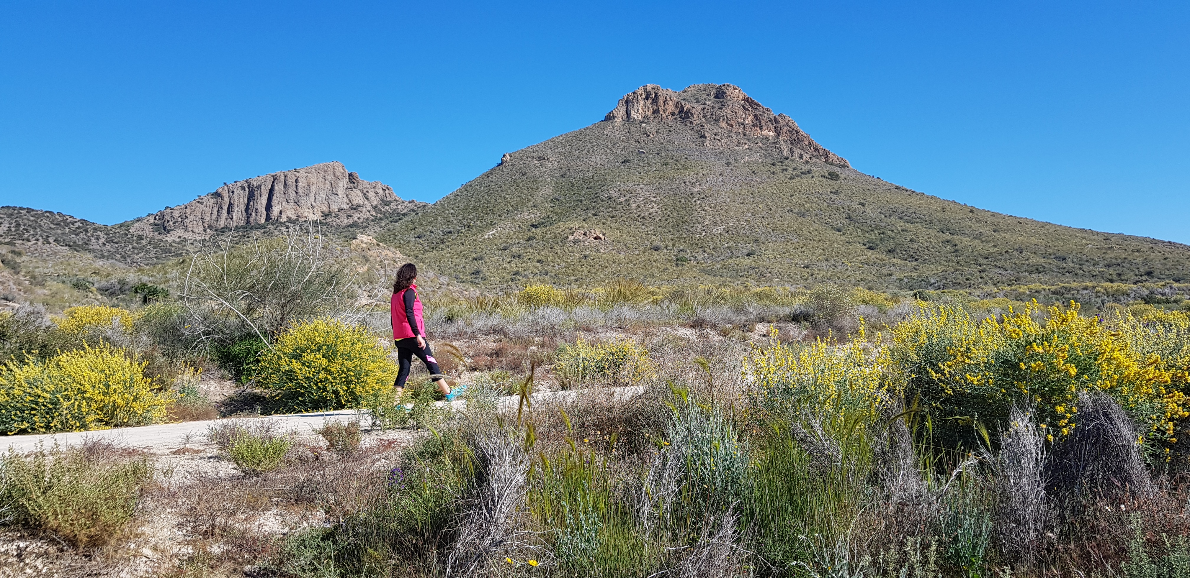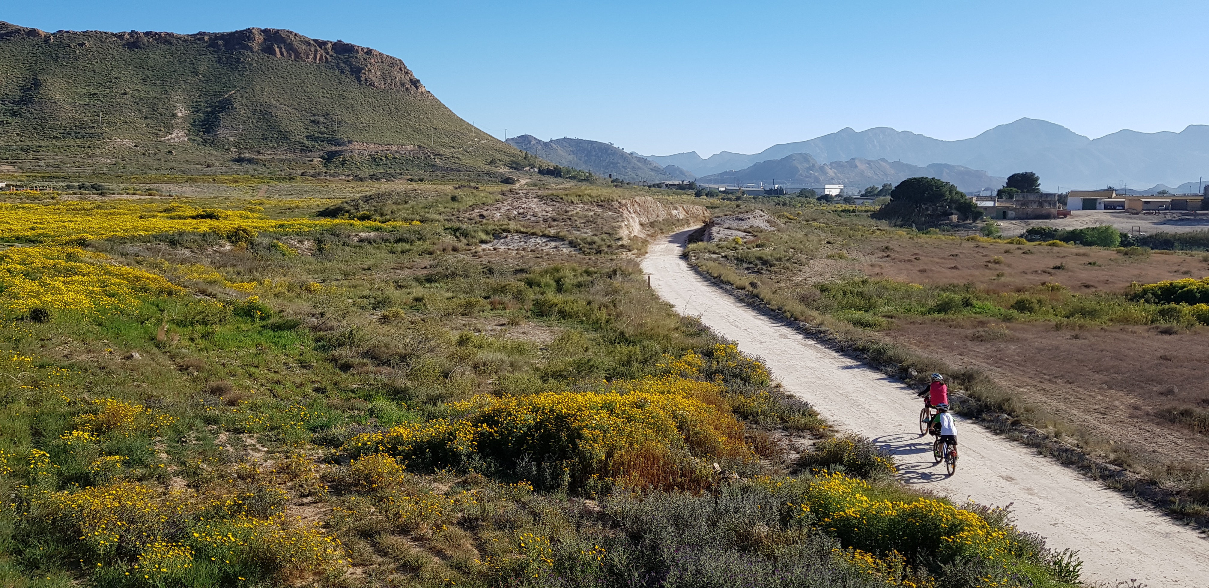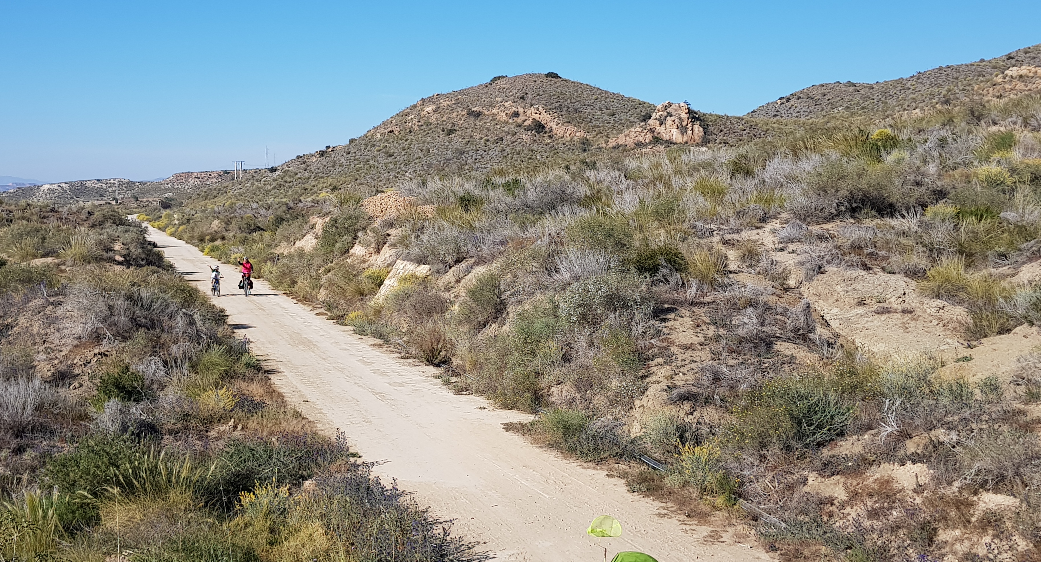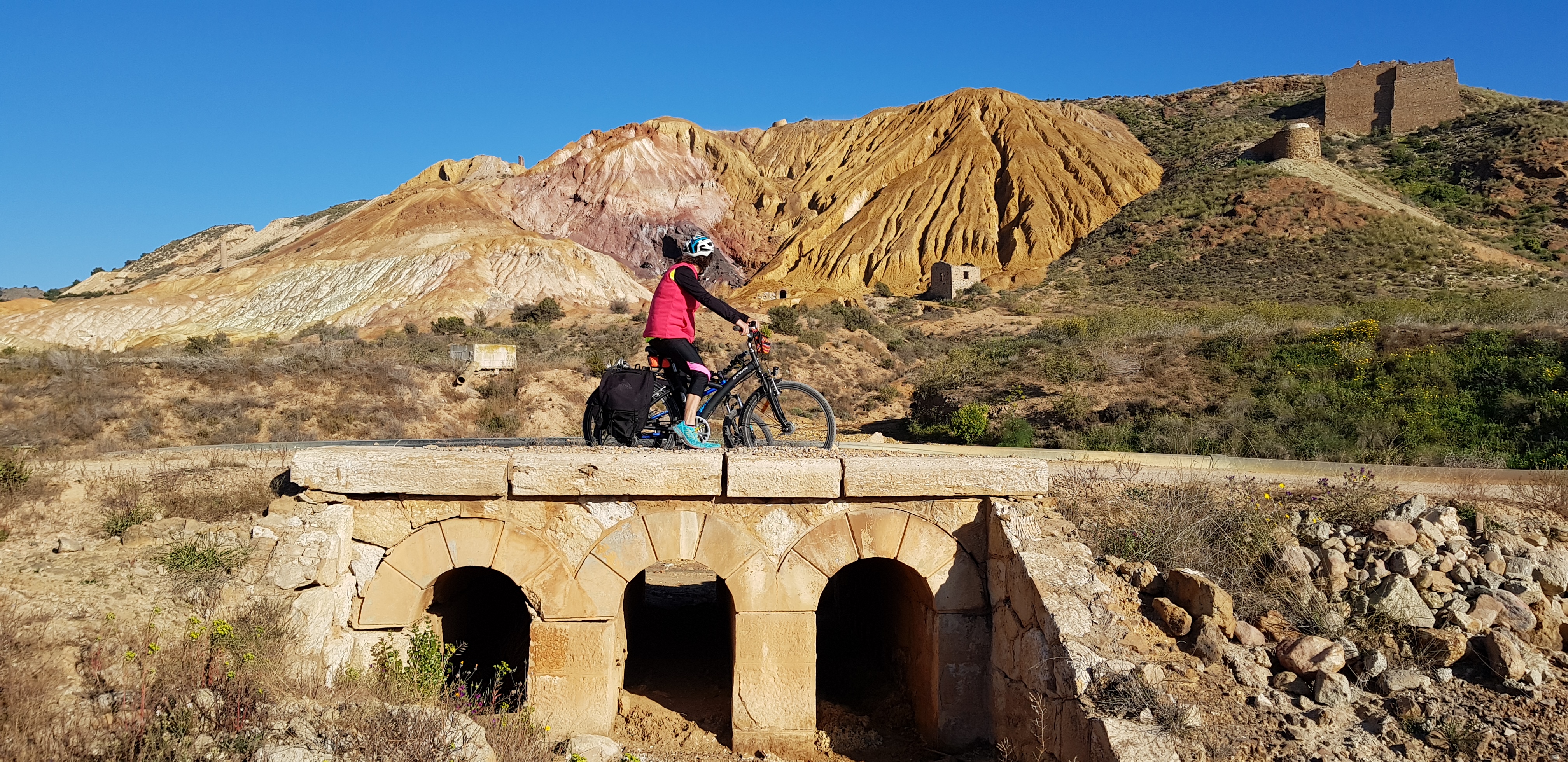 The section La Pinilla-Mazarrón, of the unfinished Railroad Cartagena-Águilas, descends and borders the foothills of the Sierra del Algarrobo, until reaching the bright colors of the Mining Hill of San Cristóbal, in the vicinity of Mazarrón.